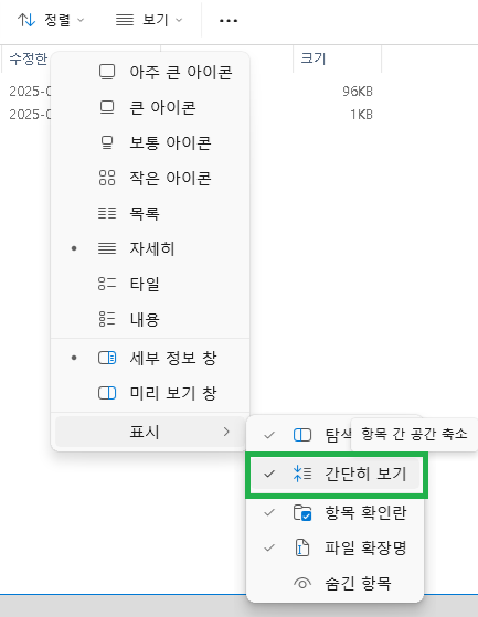 - [표시] → [간단히 보기]를 클릭합니다.